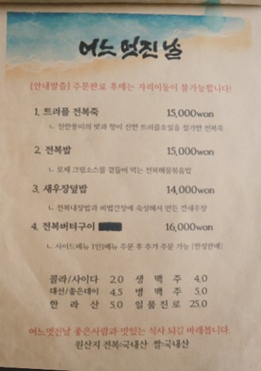 메뉴는 저게 전부 였던덜로 기억하는데,